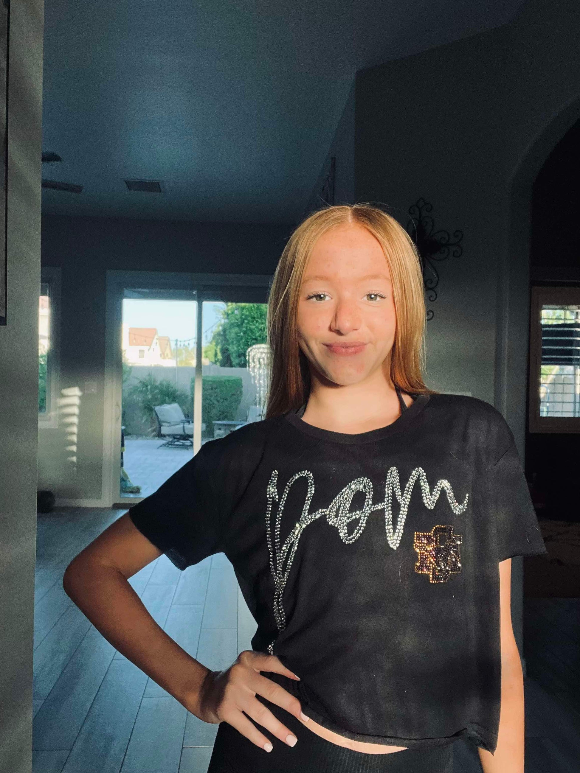 This rhinestone design is an ideal way to display your school spirit for Sunrise Mountain Pom. Select from a variety of options such as a crewneck tee, V-neck tee, cropped tee, women's fit tee, crewneck sweatshirt, or hoodie.